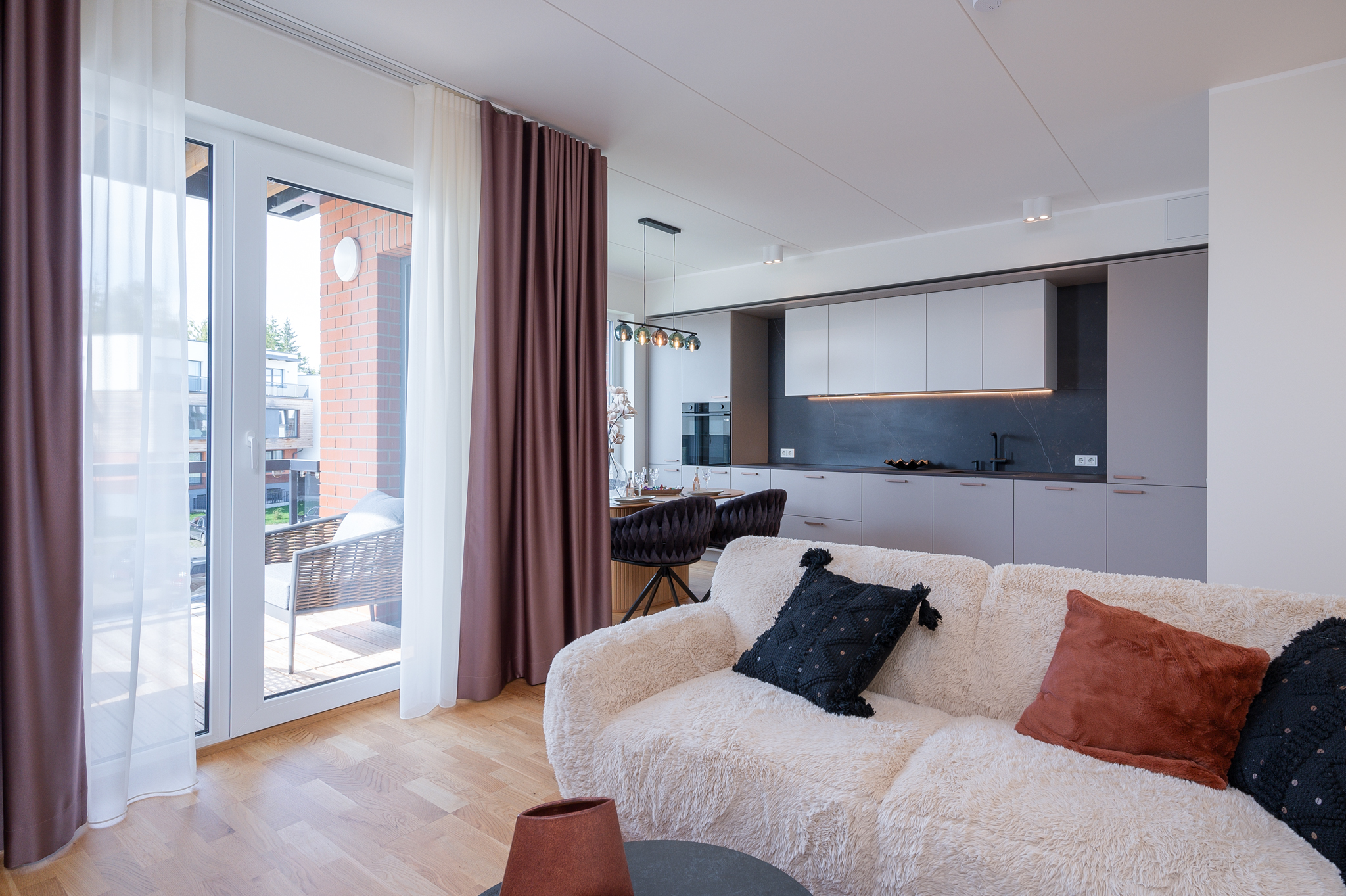 Erminurme kvartali kõige uuema näidiskodu kirjeldamisel ei pääse üle ega ümber sellistest märksõnadest nagu soojus, pehmus ja hubasus. Aadressil Erminurme tee 18-12 asuva korteri disain on läbivalt ühtse värvigammaga, moodustades beeži, roostekarva oranži, vanaroosa ja musta võluva sümbioosi.