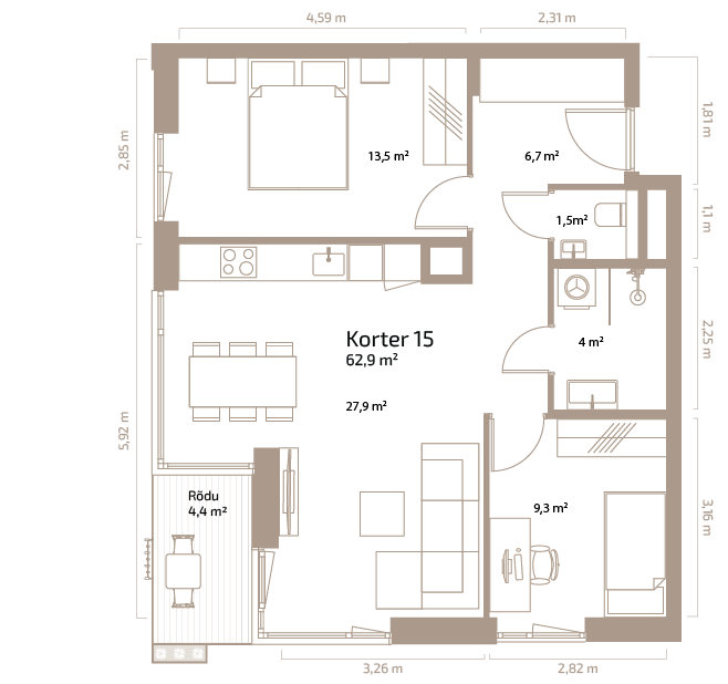 Suurus 62.90 m²