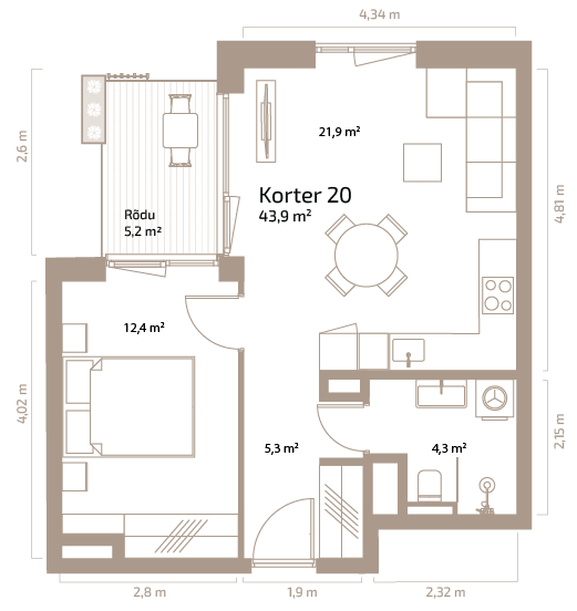 Suurus 43.90 m²