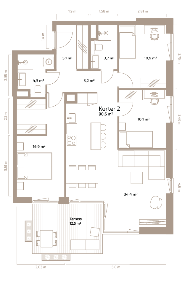 Suurus 90.60 m²