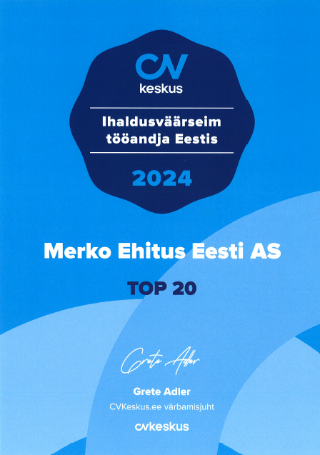 Tööportaali CVKeskus.ee uuringus valiti Merko ehitussektori ihaldusväärseimaks tööandjaks.