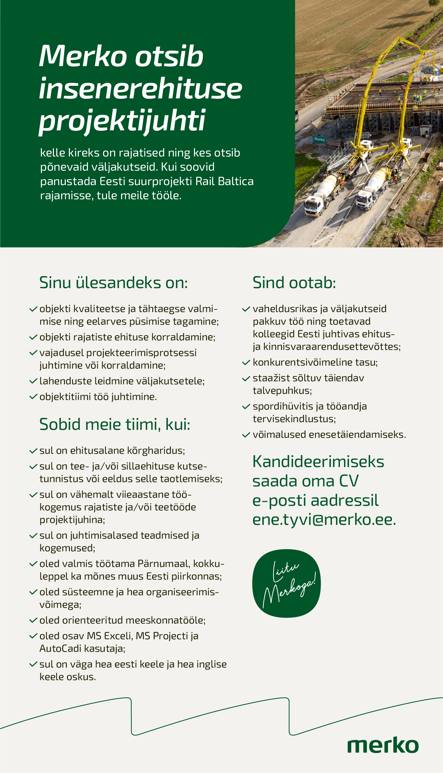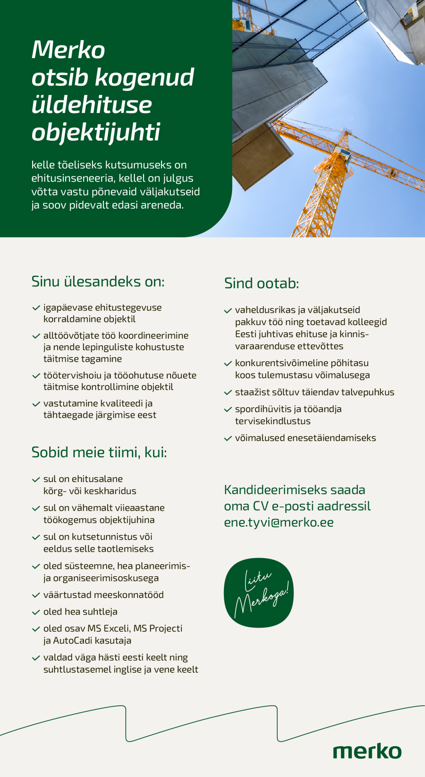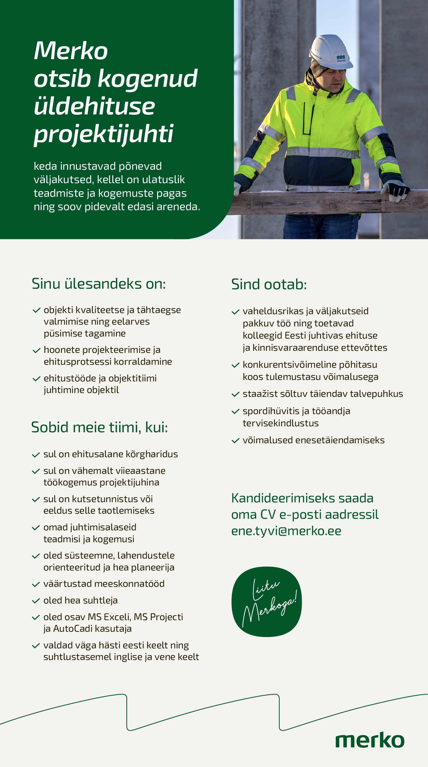 Teosta end ehituses, kinnisvaraarenduses või tugiteenustes. Merkos leiad kindla töö, põnevad objektid ja toetava meeskonna.