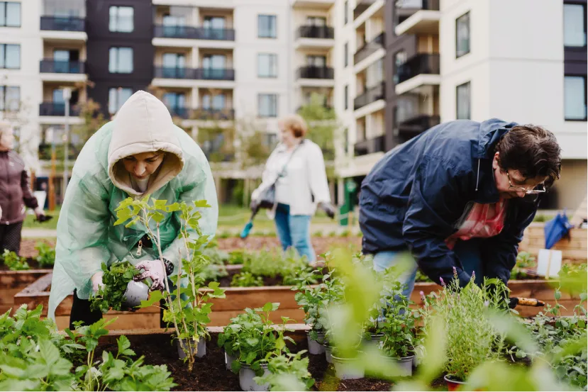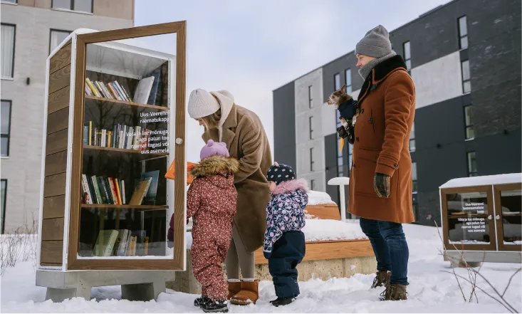 Наши дома не ограничиваются четырьмя стенами, окрестности не менее важны. Удобные возможности для движения, безопасные и озелененные дворовые зоны, игровые площадки и необходимые повседневные услуги – мы создаем среду, в которой хорошо живется.