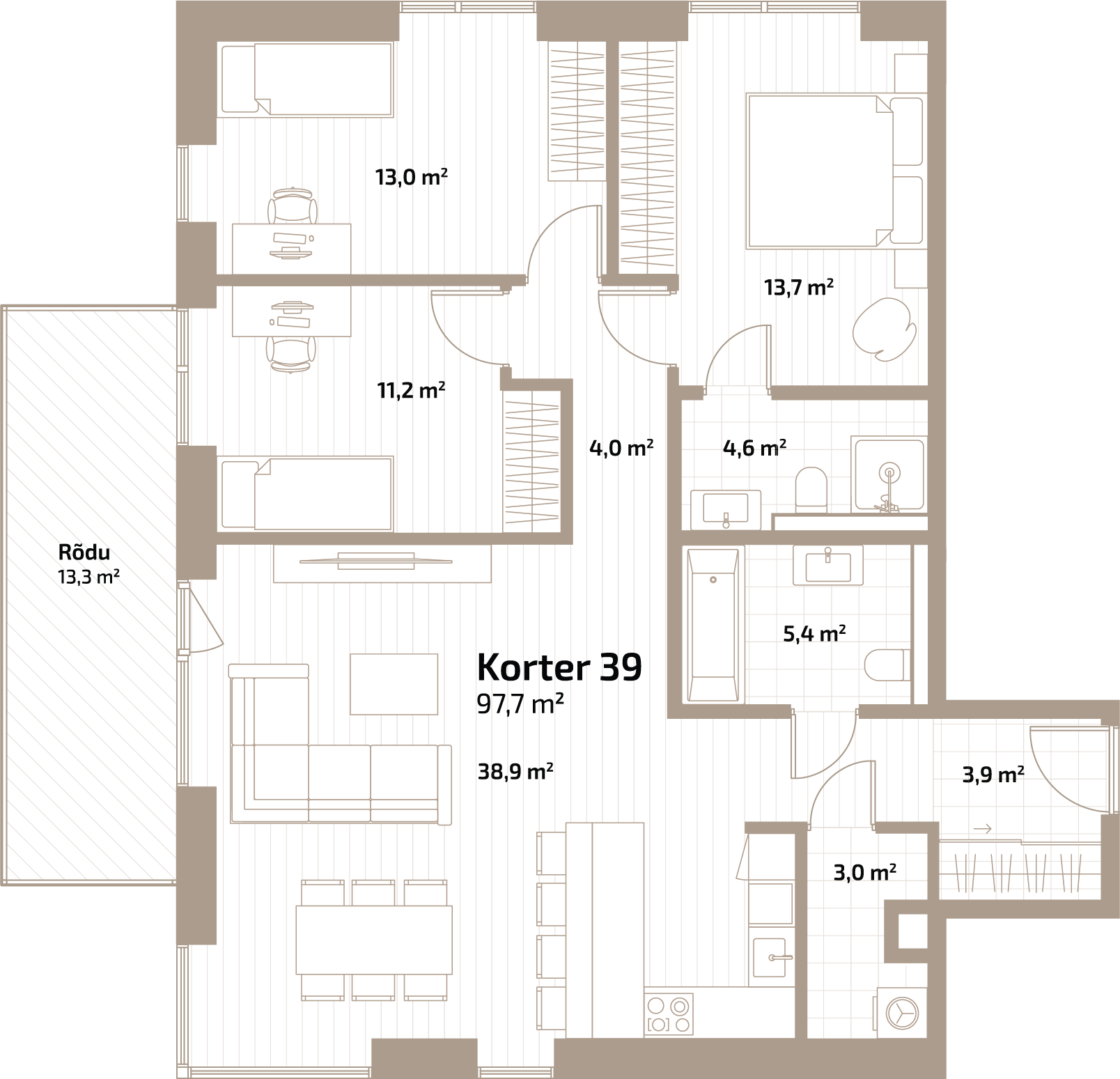 Каждому дому нужен характер. Выберите отделку, продумайте кухню и гардероб и пользуйтесь решениями, созданными нашими дизайнерами интерьера. Все выборы можно отслеживать и изменять в Minu Merko до заключения договора.