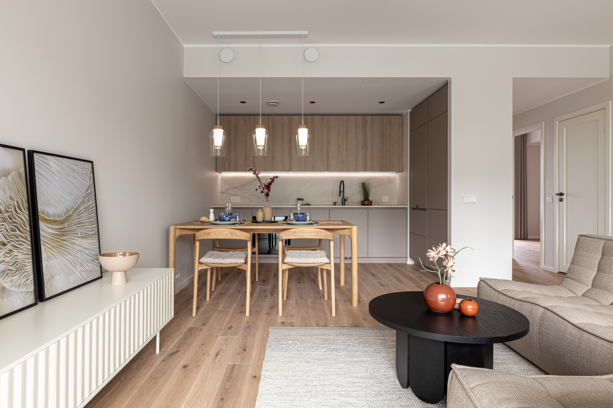 Et kirev plaat küll inspireeris värve ka tubadesse tooma, näitame selles korteris pigem, kuidas põnevaid aktsente rahuliku ja maheda koloriidiga toetada.