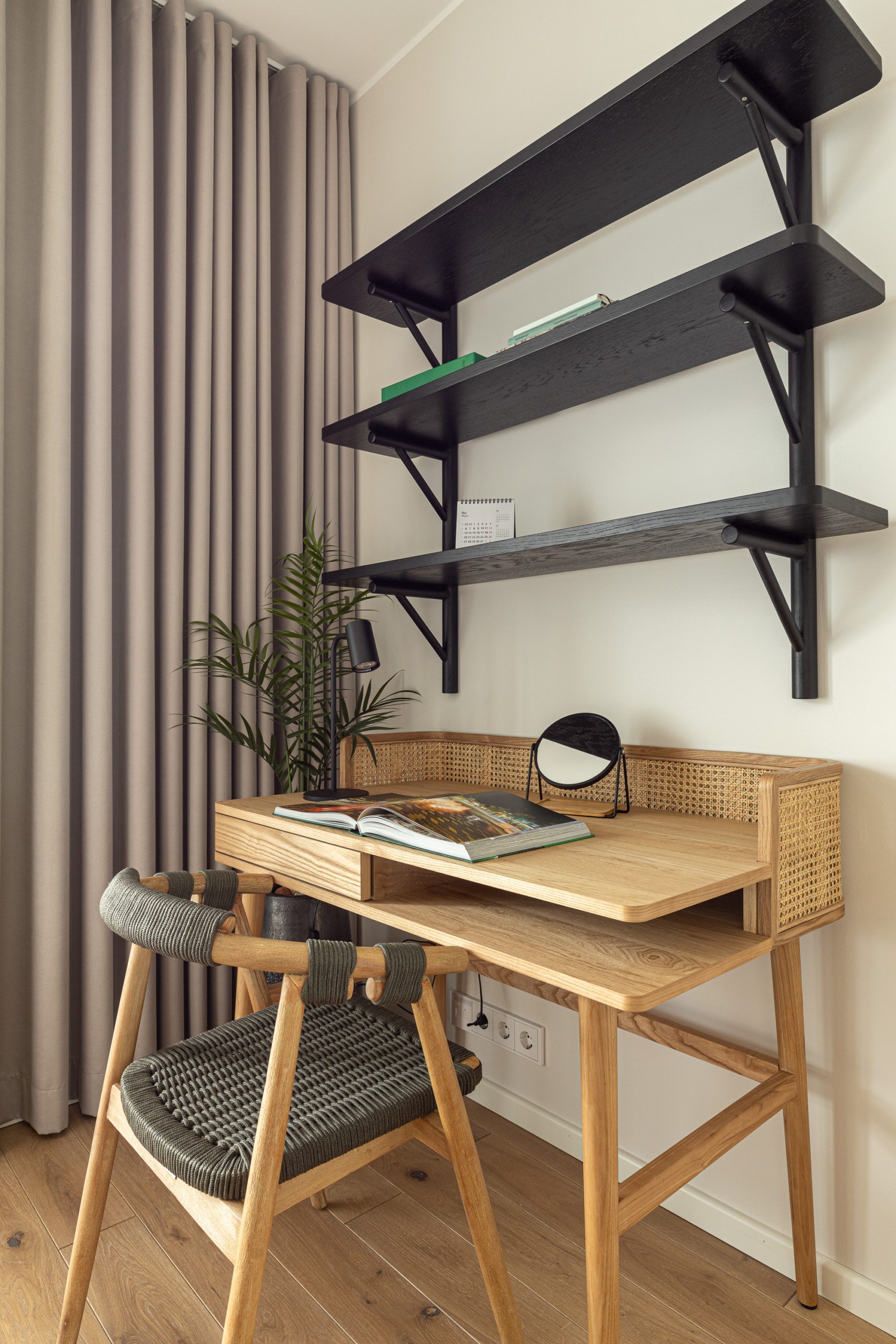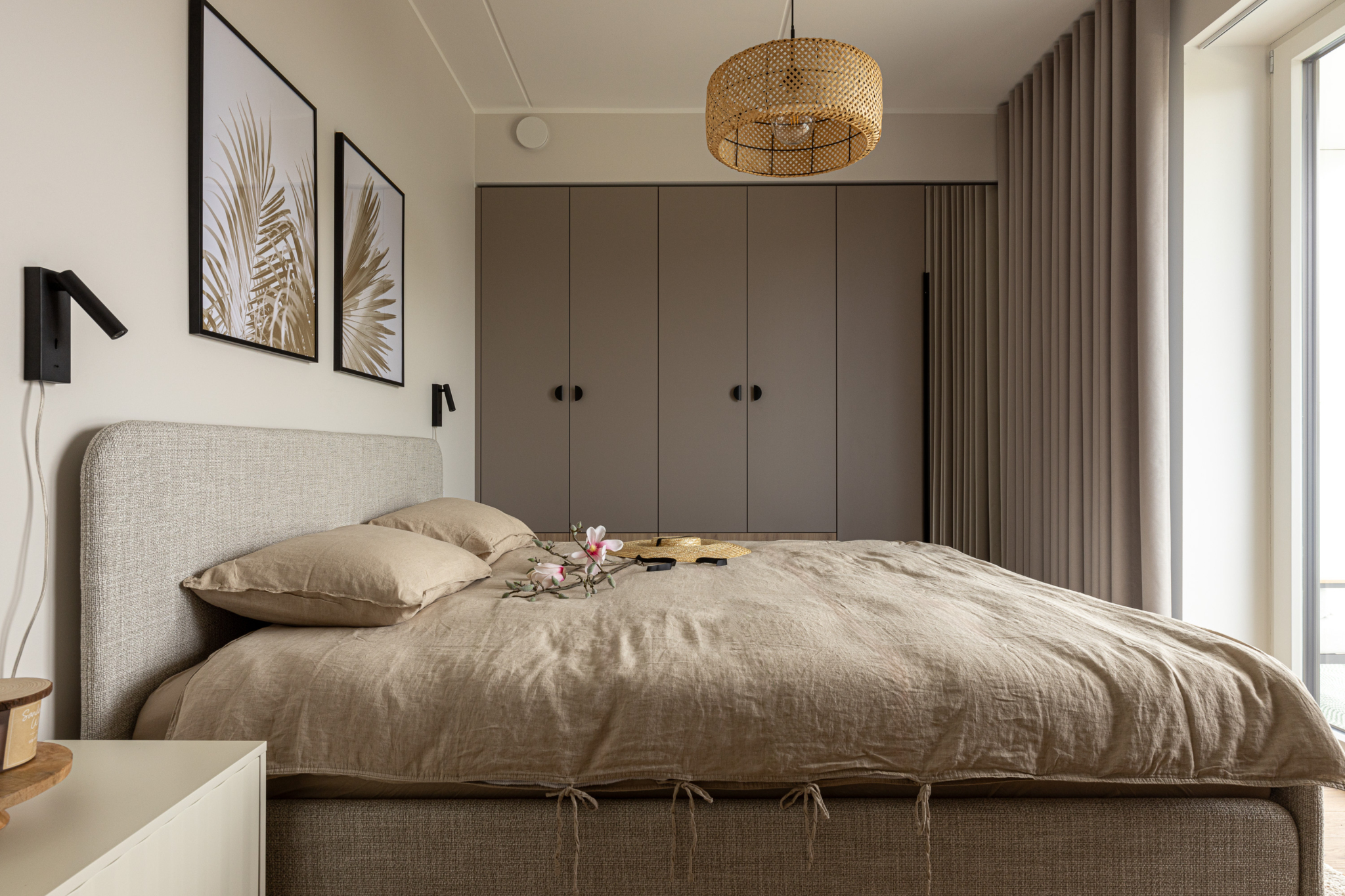 Eesti tootja Kaissu voodi koos mõnusa 180 cm laia madratsiga troonib keset tuba, ent ruumi jääb ka Furgnerist leitud kaunile meigi- ja/või töölauale ning raamaturiiulile.